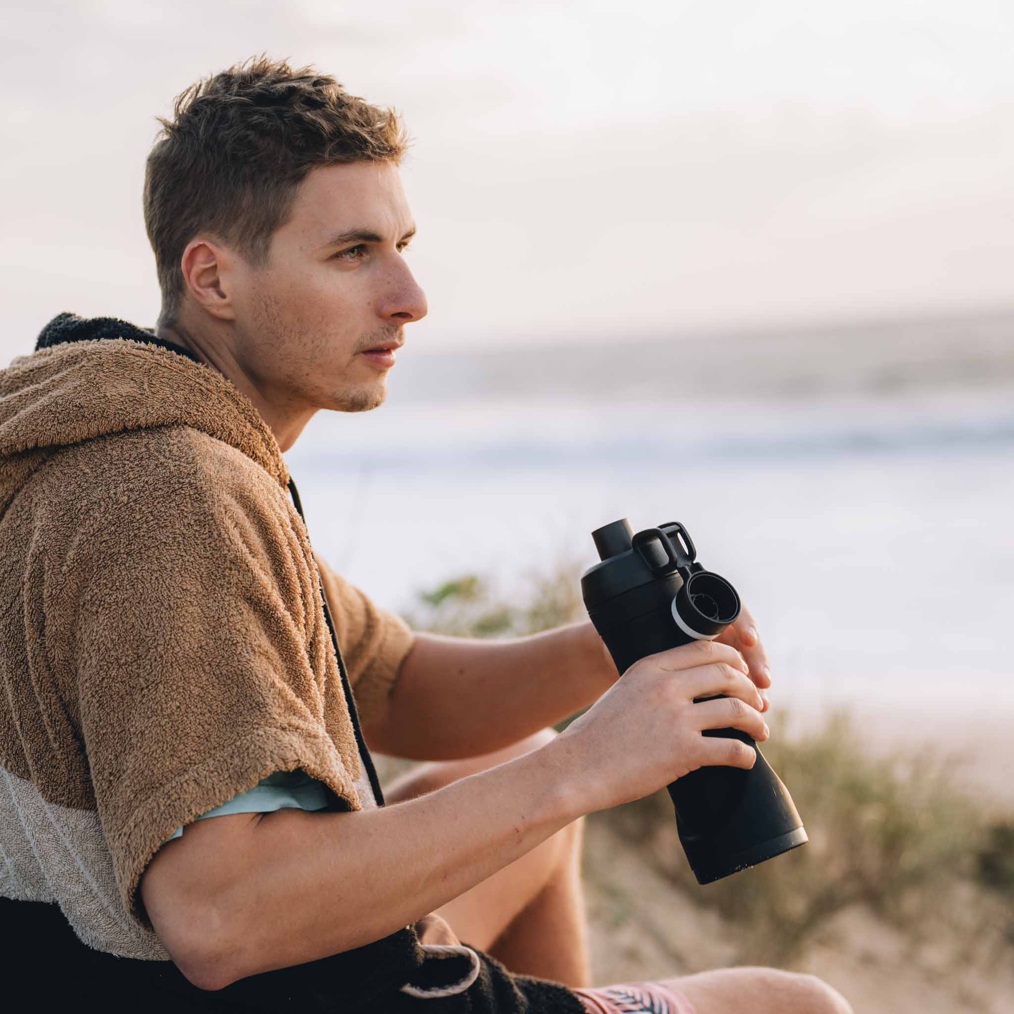 Beim Trinken fällt dir der Deckel nicht ins Gesicht, weil er praktisch eingerastet wird.